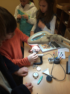 Students explored the tools and inner workings of clocks under the guidance of a watch maker.